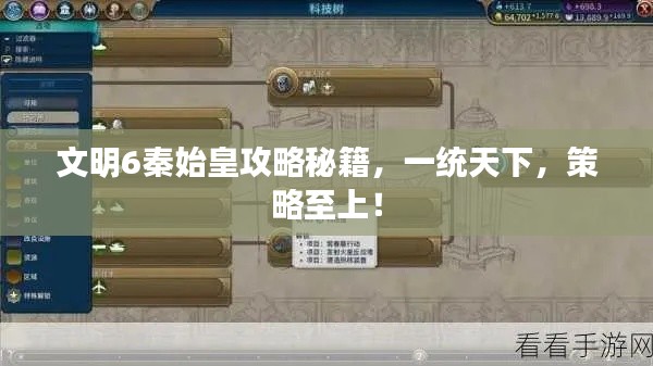 欢迎各位玩家来到这篇关于文明6中秦始皇的最新攻略,在这个全面战略游戏中,秦始皇无疑是一个强大的领袖,他的独特能力和对中国文明的深刻理解,使得他在游戏中展现出强大的统治力,本攻略将为你详细介绍如何使用秦始皇在游戏中取得优势。